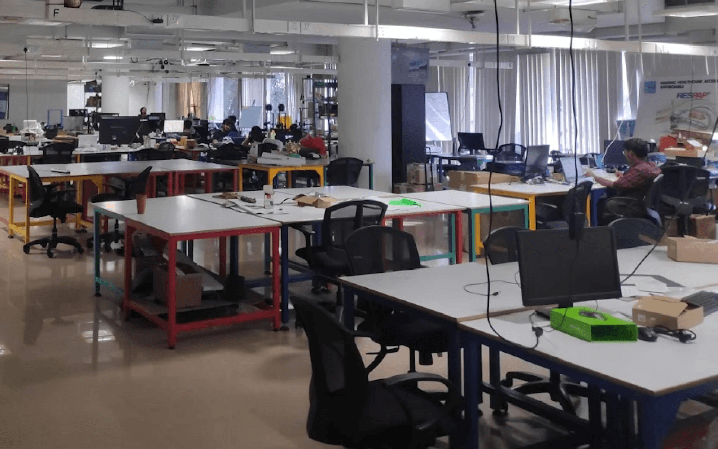 Co-working environments, office spaces and shared labs across hardware and biotech.